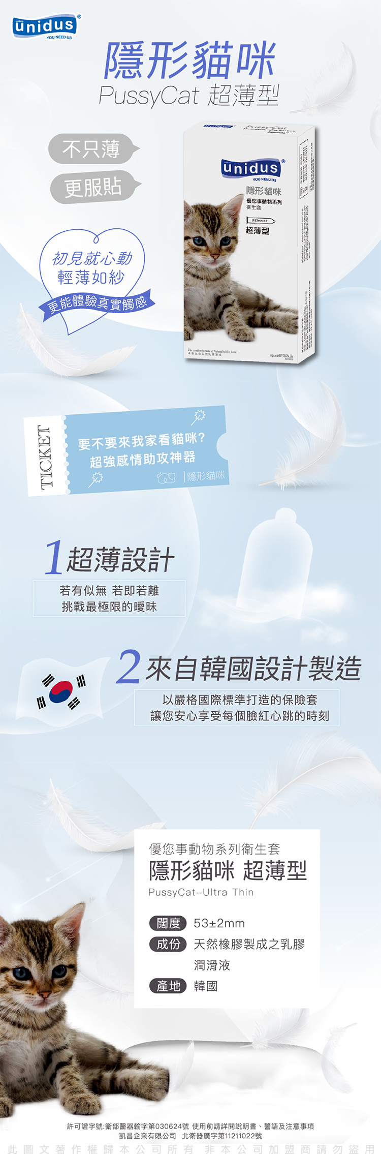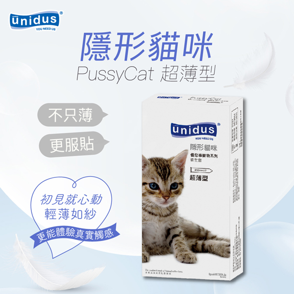 unidus優您事 動物系列保險套-隱形貓咪-超薄型 12入