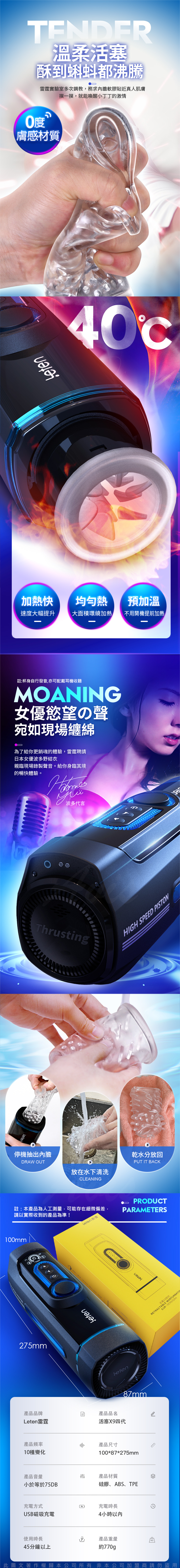 LETEN 雷霆暴風X-9 第四代活塞語音智能加溫電動飛機杯 波多野結衣配音