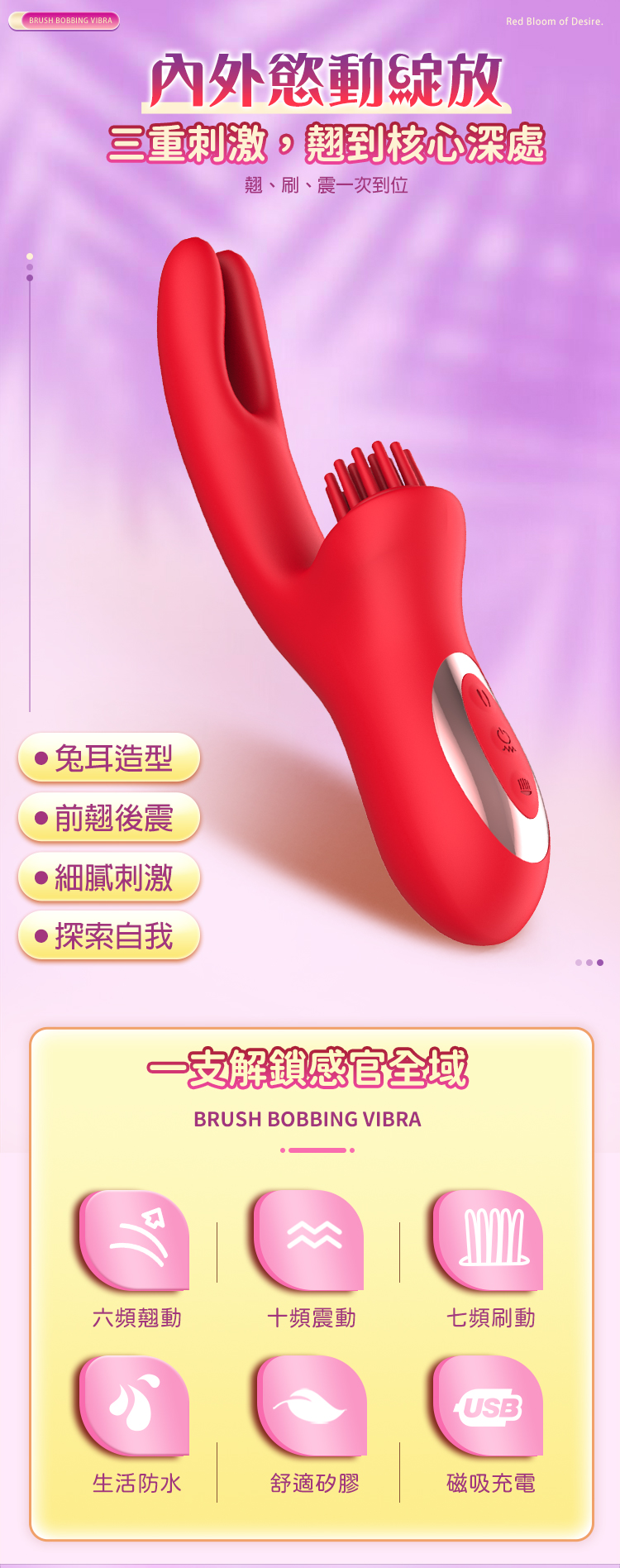 6頻翹動+10頻深震+7頻毛刷,多段模式自由組合,快感不重樣。
