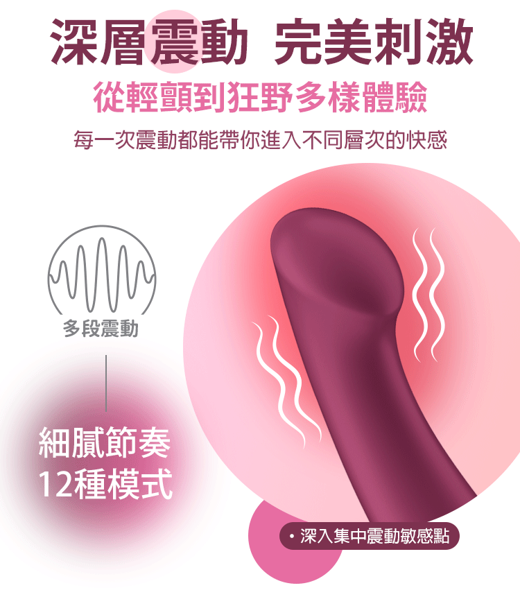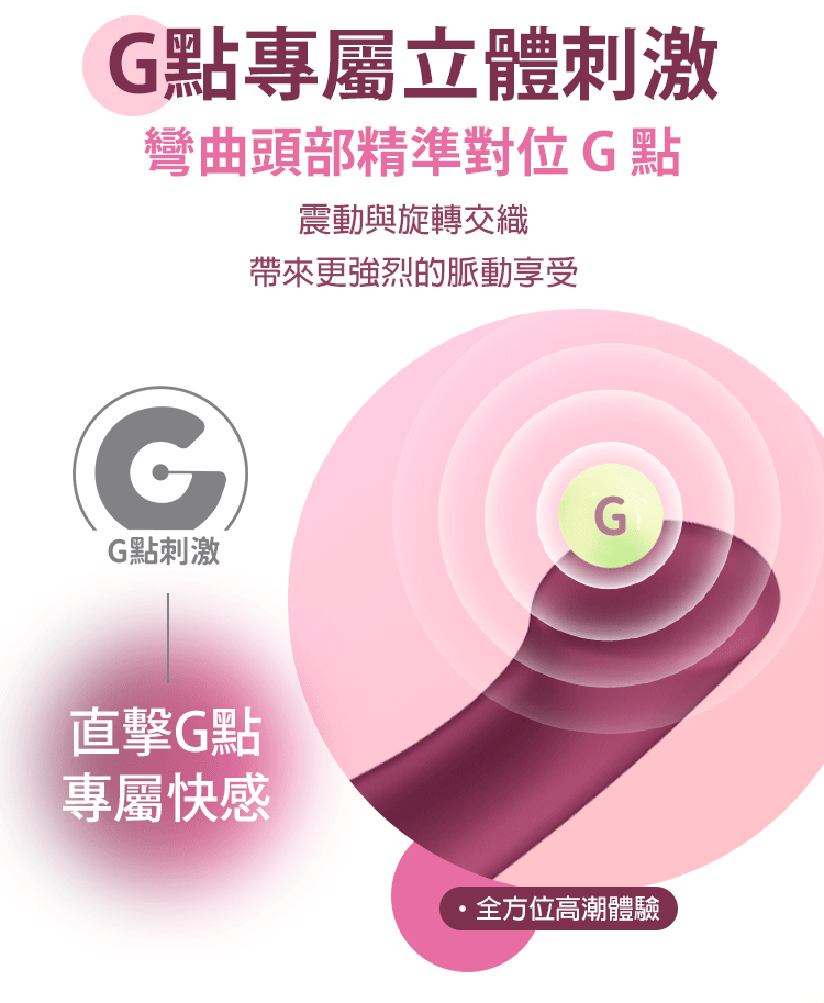精準貼合陰道曲線,集中刺激G點與陰蒂,帶來深層酥麻與持久愉悅。