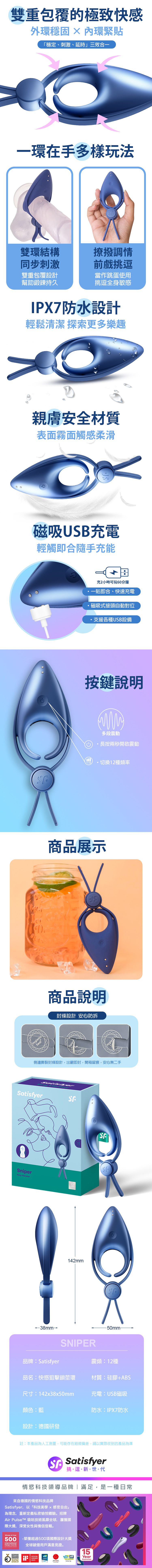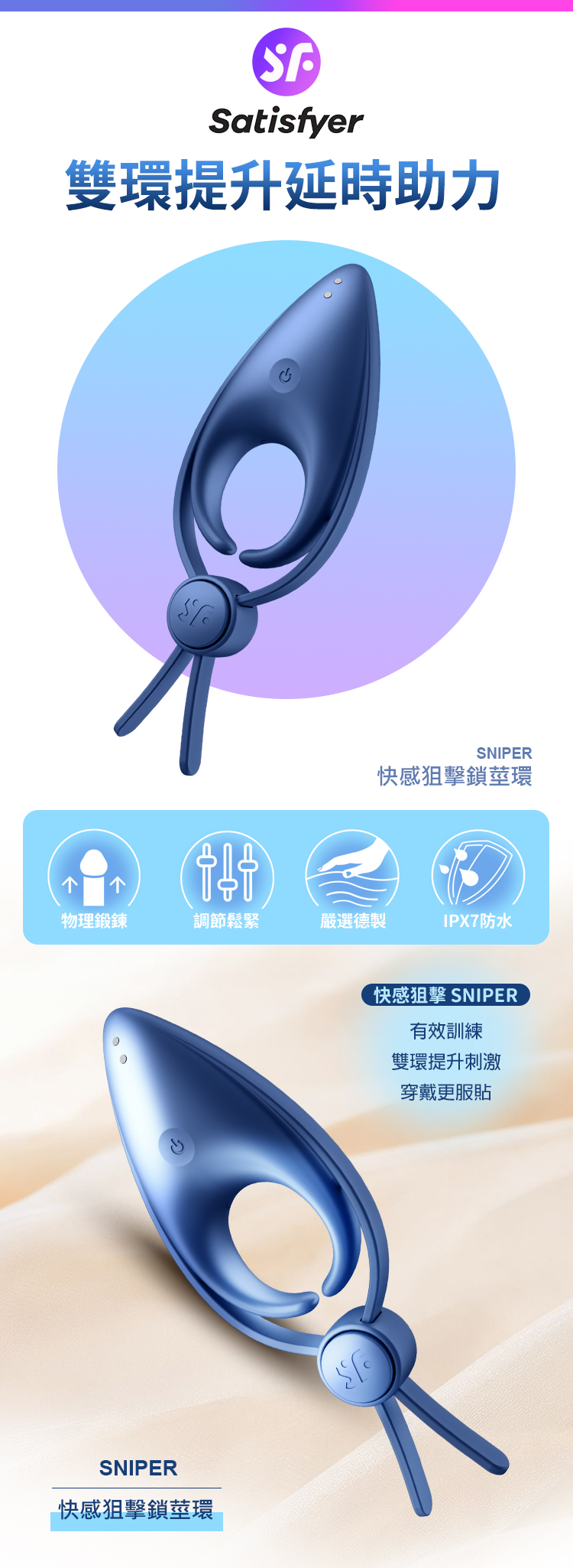 Satisfyer|Sniper|快感狙擊 可調節男士精力雙環 藍