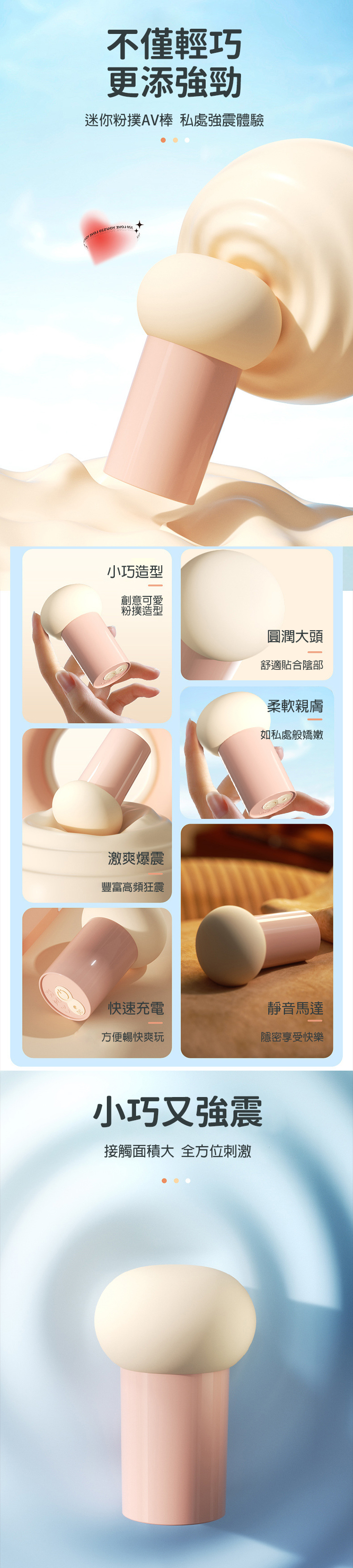 柔嫩粉撲外型,握感溫柔、震感火辣。